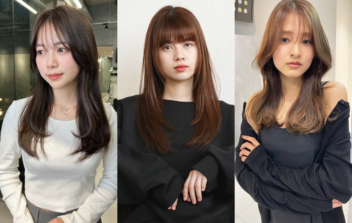 顔まわりにレイヤーを仕込み、韓国風にしたトレンド感あるロングスタイル。レイヤー部分は内巻きにし顔に沿わせると、高い小顔効果を発揮。おしゃれ度もぐんとアップ。
