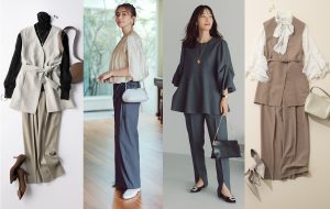 女性は、シンプルなワンピースやノーカラージャケット、セットアップなど、上質な素材かつ上品な色使いのアイテムが適しています。スカートは膝下丈、パンツはとろみ素材やセンタープレスのものなど合わせ、足元はパンプスが相応しいとされる傾向にあるようです。