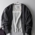 ユニセックスで楽しめるロゴスエットに、カシミア混のロングカーデをゆるりとはおって。見た目も着心地もリラクシーな着こなしも、どこか上品ムードに仕上げてくれるのがグレー。チェック柄パンツからひろったパープルをバッグとリンクさせて♡ そんな小ワザもマネしたい!
