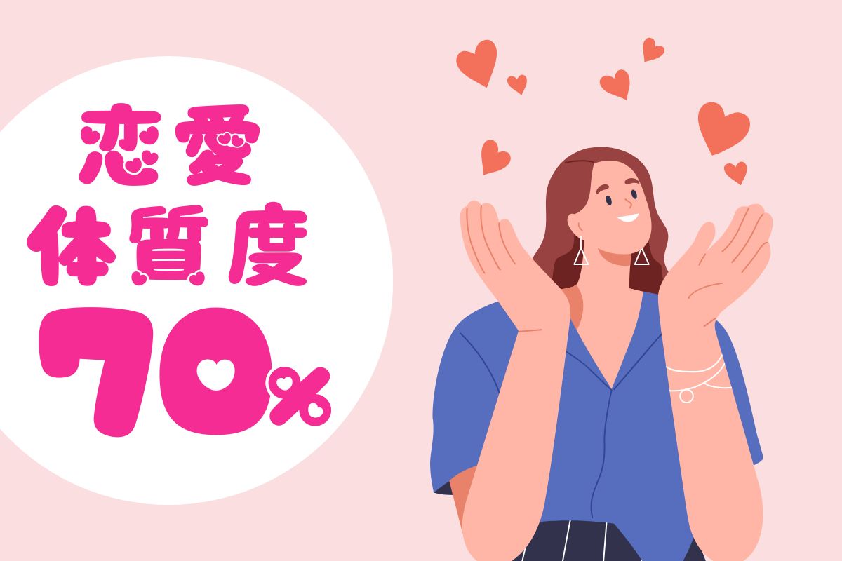 あなたの恋愛体質度は高めです。恋愛は人生の中で重要な要素ではありながらも、それ以外にも大事なことがあると思えるタイプ。恋愛に対しての憧れが強く、好きな人ができると積極的にアプローチします。ただし、恋人ができても相手に依存するほどではありません。