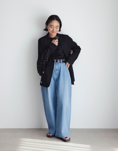 トレンド感のあるタック入りパンツは、体が程よく泳ぐワイドシルエット。穿くだけでスタイルアップを叶えてくれると同時に肌離れがよく、涼しく快適な穿き心地です。