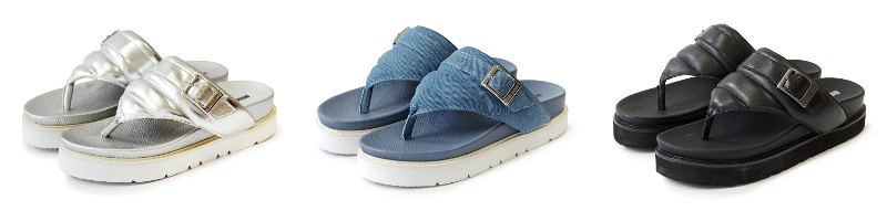 足入れがしやすく、足をふわっと包み込む感覚も魅力。定番のモノトーンカラーに加え、アクセントカラーになるデニムとシルバーも展開します。