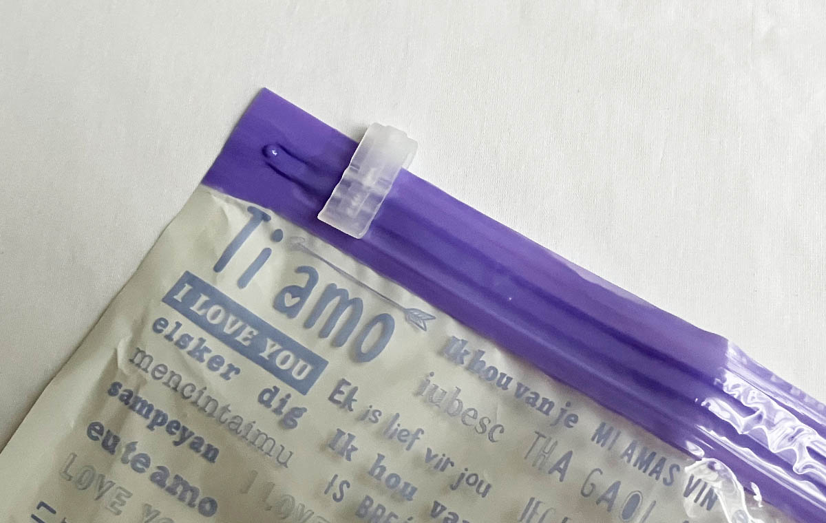 逆止弁が付いていて抜いた空気が戻らないようになっています。また、スライダー付きで閉じられるのも簡単!