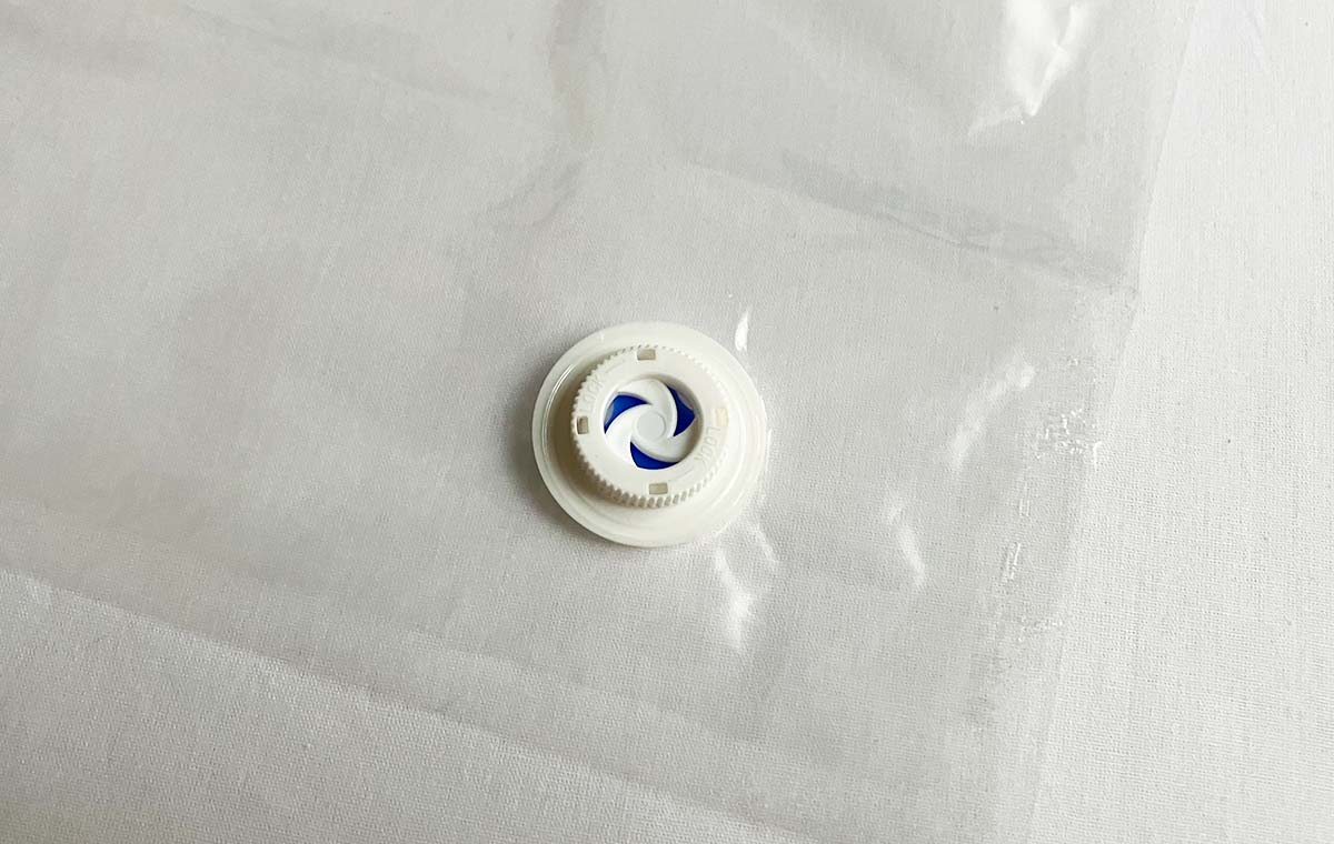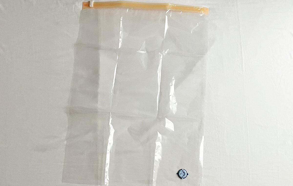 空気が逆戻りしにくい「ミニバルブ」が付いた圧縮袋。