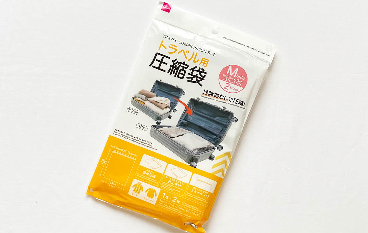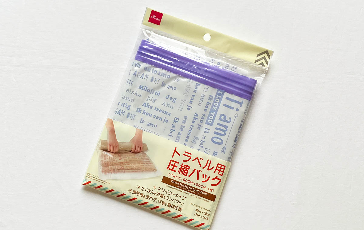 そんなときに大活躍するのが、100円ショップ『ダイソー』の圧縮袋です。複数の洋服を圧縮してコンパクトに持ち運べます。100均好きエディターAは、長期留学の際にダイソーの圧縮袋を愛用していました。