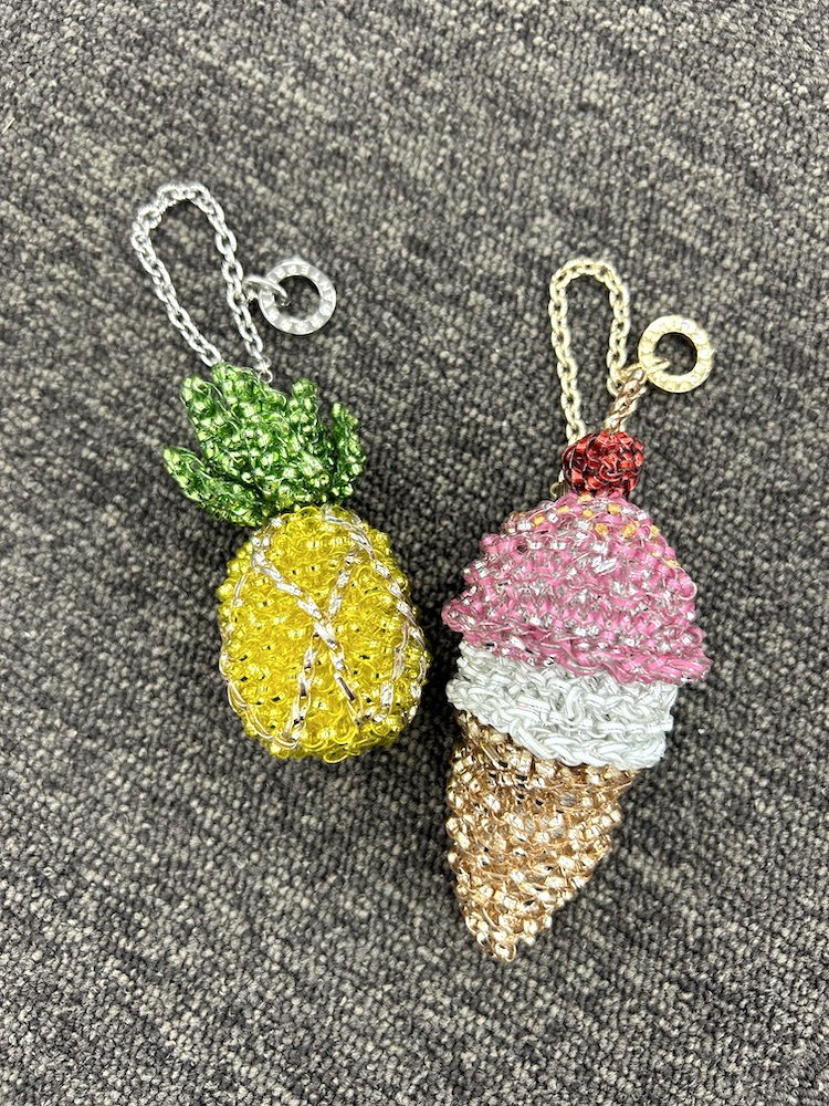 シンプルなバッグにつけるほか、かごバッグやビニールバッグにプラスして思いきりポップに寄せるのも夏らしい! バッグに限らず鍵などの小物にも使えるので、自分へのご褒美やプレゼントにも最適です。