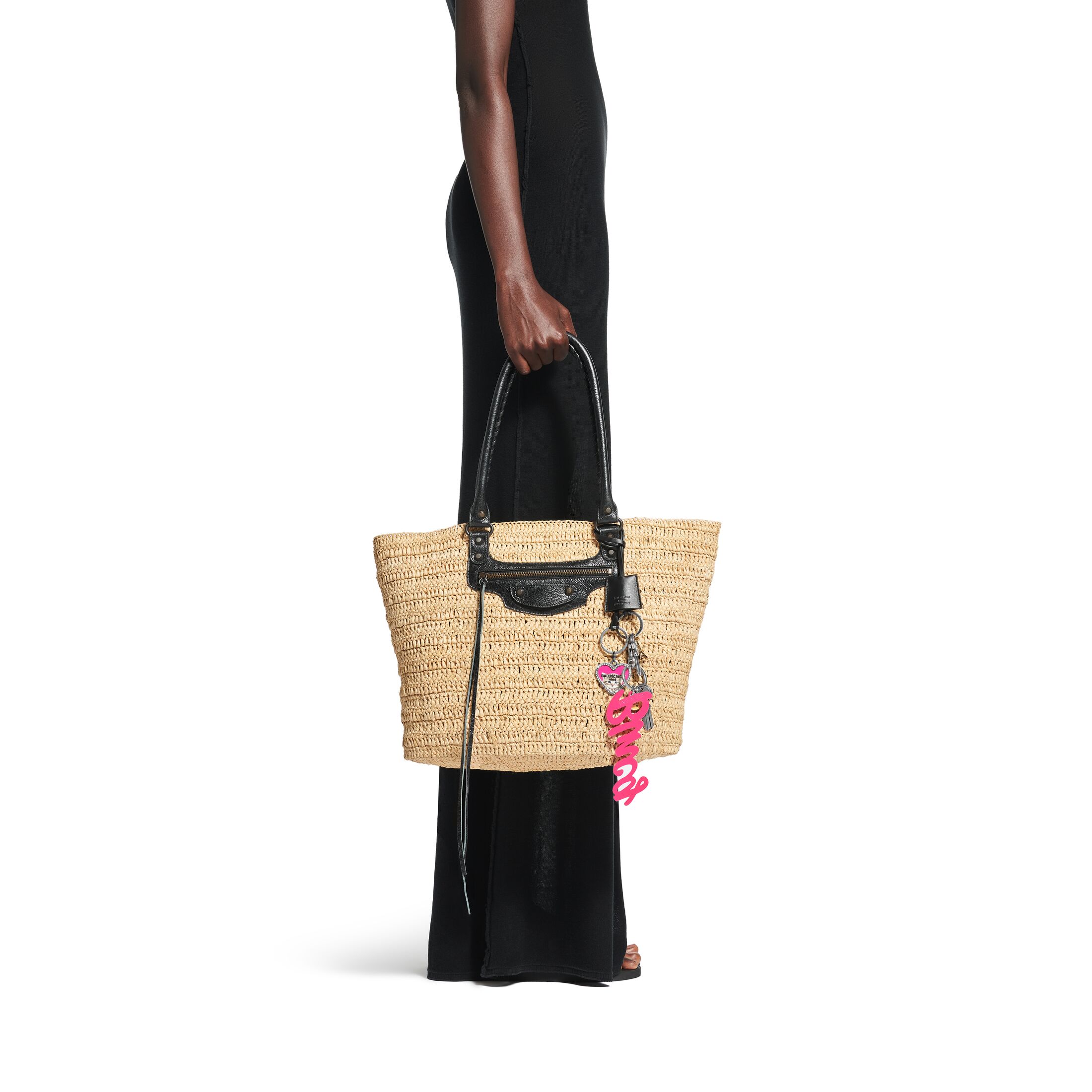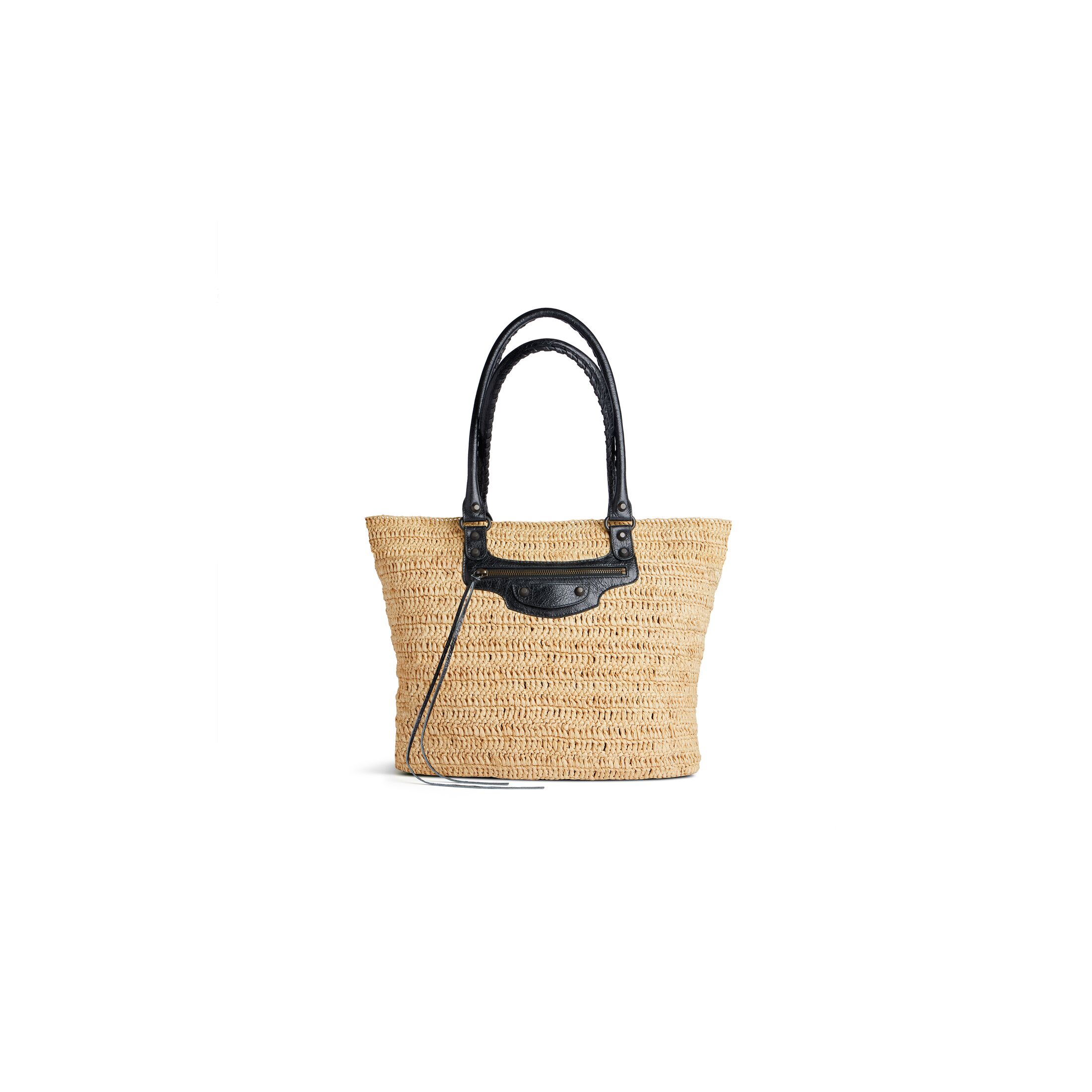 カーフナッパレザーと手編みのコーンリーフを使った底部が特徴。伝統的な職人技と現代的なデザインが組み合わさっています。長めのダブルハンドルや取り外し可能なチャーム、マグネット開閉付きと実用性もあり、都会的な雰囲気とリゾートらしい軽やかさも併せ持っています。