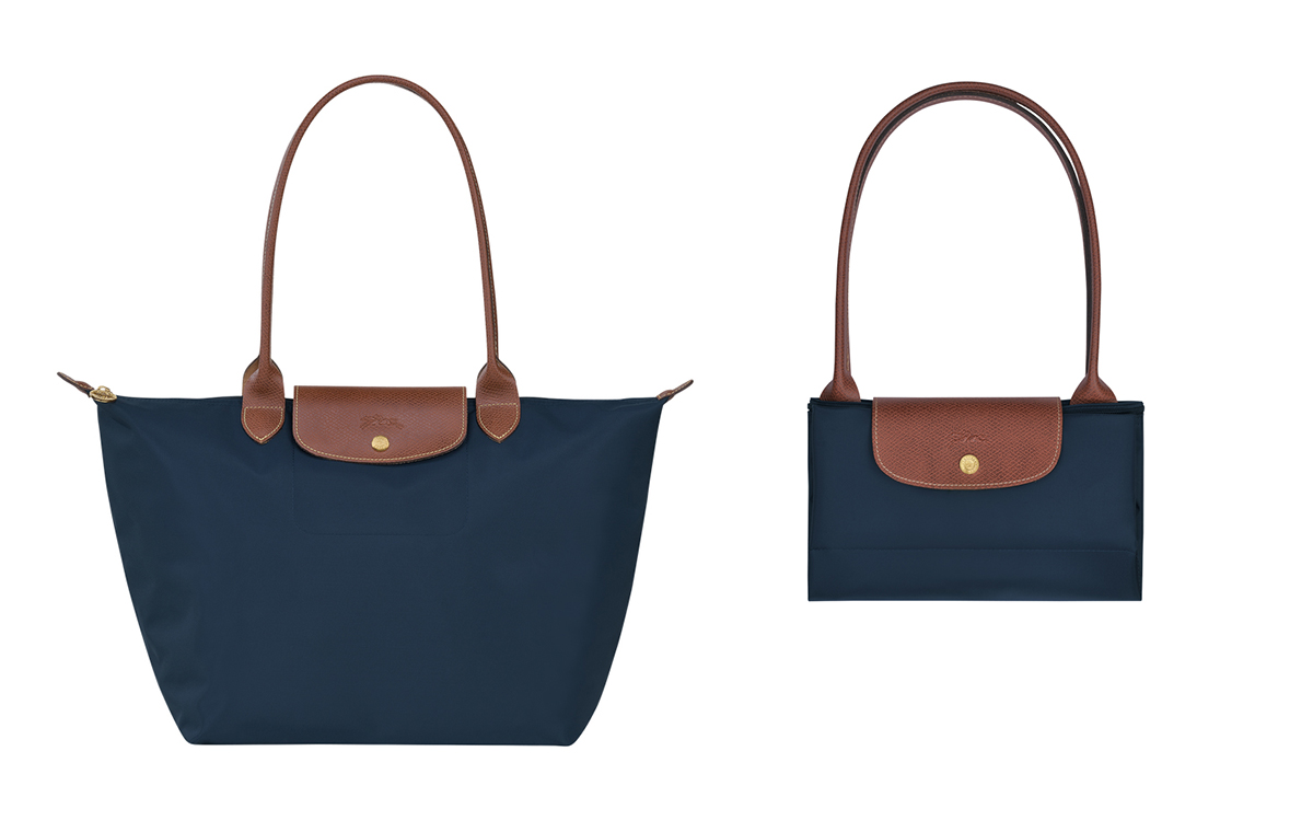 〝たためるバッグ〟として人気の「ル プリアージュ®」シリーズは、ペーパーバックサイズ(ソフトカバーの本)まで折りたたむことが可能。そのプロセスも驚くほど簡単で、右左と下部を折り込んでスナップボタンでとめるだけ。コンパクトさとボリューム感を兼ね備えた優秀バッグです。
