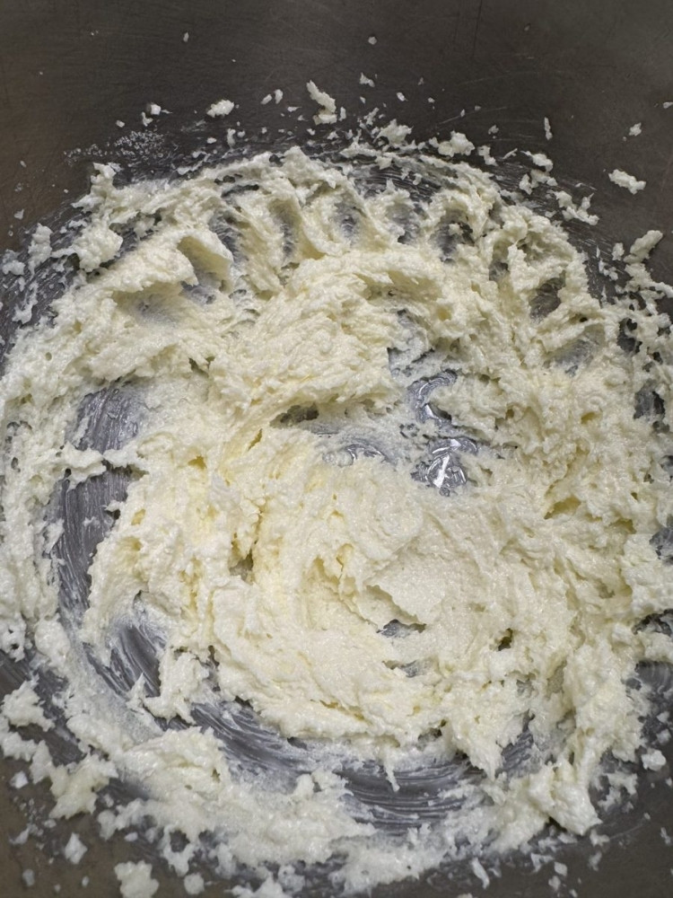 1.タルト生地を作ります。バターを常温に戻し、柔らかくなったクリーム状のバターと粉糖を撹拌します。