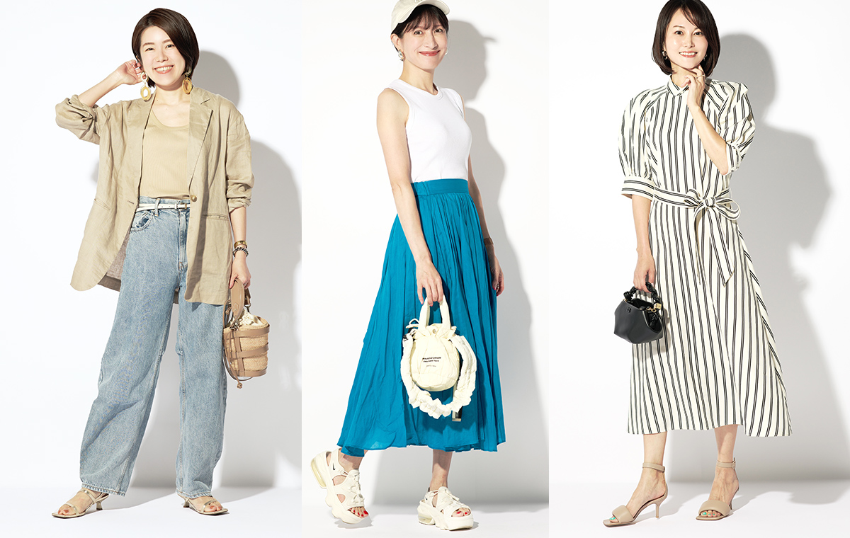 そこで今回は、おしゃれママが集うDomani Labメンバーのサンダルコーデをスナップ! 今季購入したサンダルのお気に入りポイントも教えてもらいました。