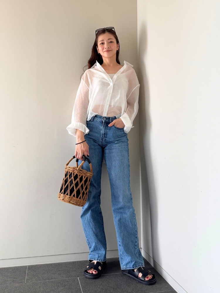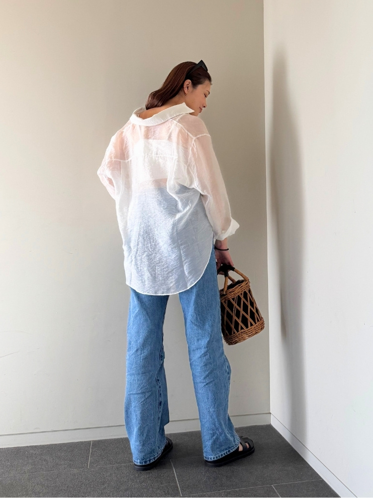 やっぱり間違いないデニム合わせ。シアーの透け感でより涼しげに見えるため、夏のおでかけにぴったり! 最近はもっぱら、このコーデの出番が多めです。