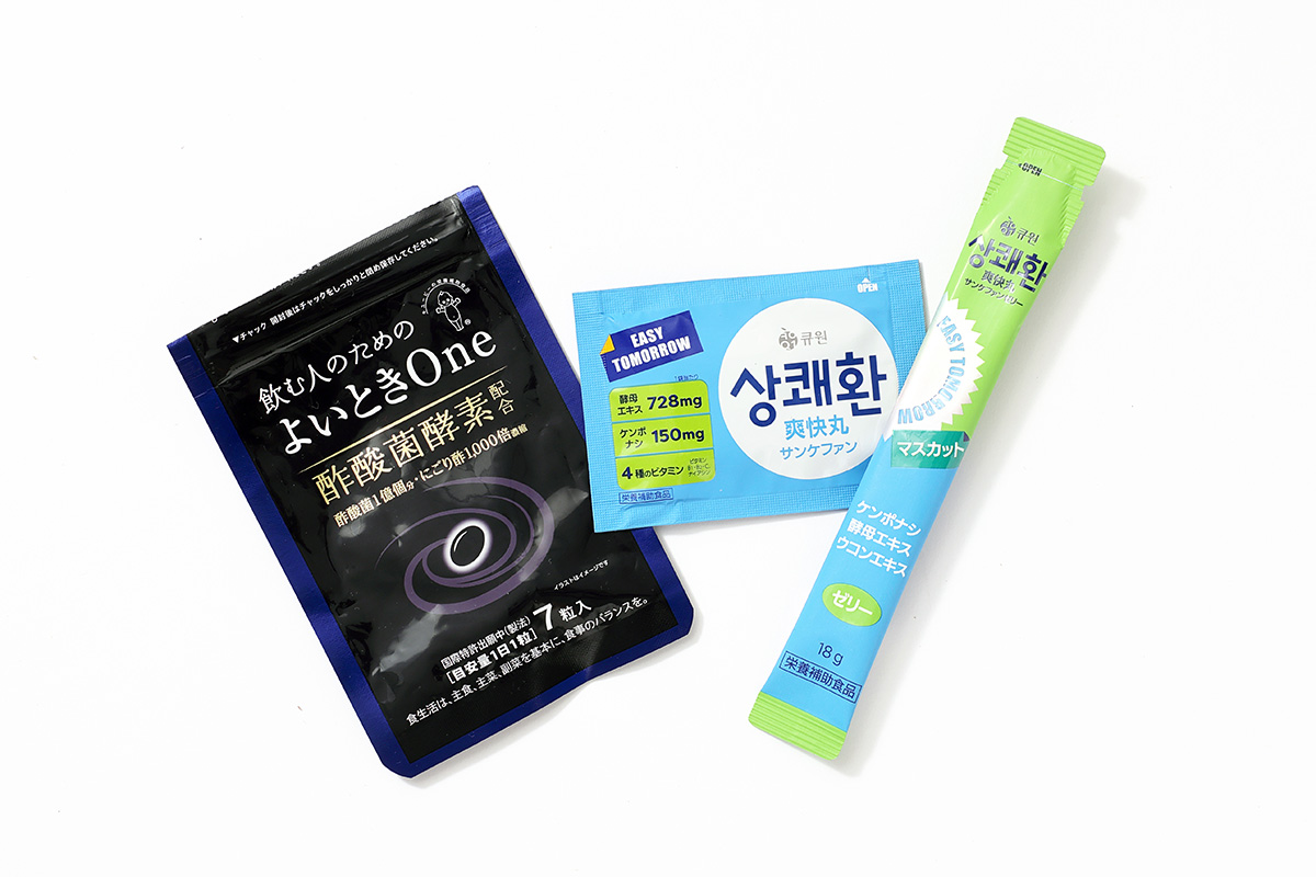 「サプリはいろいろなものをお試し中。サンケファンは編集部のスタッフが韓国に行くたびに買ってきてもらっていましたが、日本でも入手できるように! 万が一忘れても、飲み会の直前にローソンに立ち寄って買えるようになったのがうれしいです」