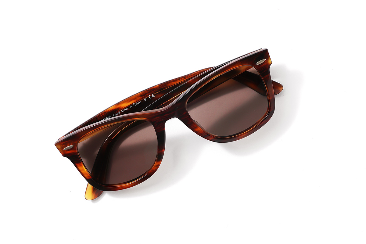 「もう何年も愛用しているレイバンのウェイファーラー。写真の茶系以外に黒も持っています。日差しが強いときだけでなく、前髪が邪魔なときはカチューシャのように使ったり意外な活用法も(笑)。ジャケットやシャツの胸ポケットに入れることも多く、ケースなしで持ち歩くことがほとんどです」