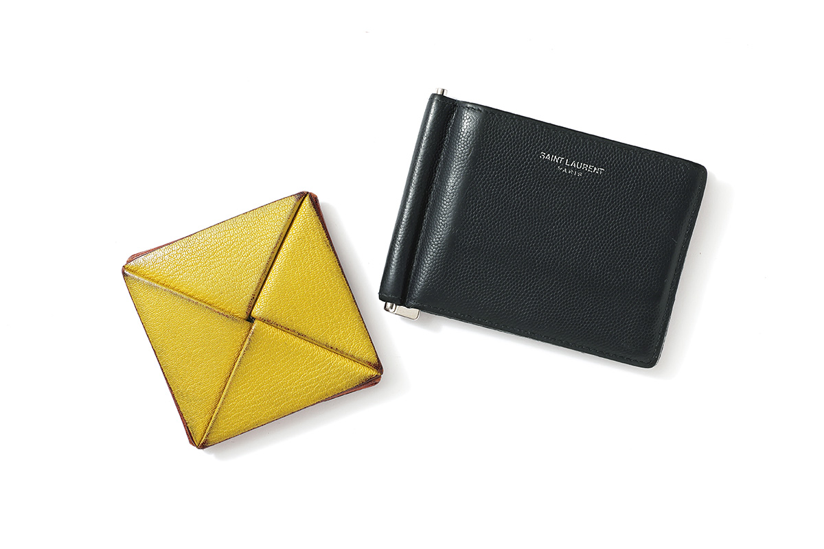 「どちらも10年選手。あまり現金を持たないので、コインケースとマネークリップの2個持ちが使いやすいバランスです。エルメス(写真左)は折り紙のように開くデザインがお気に入り」