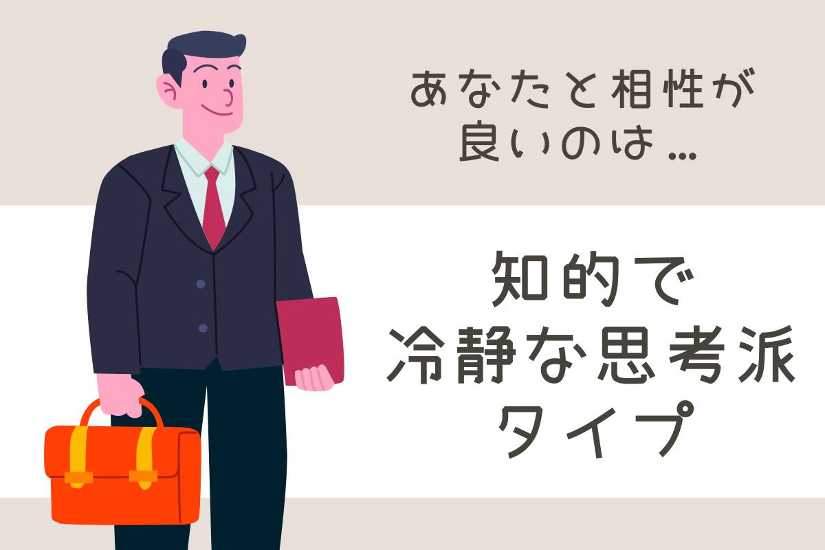 あなたは、感性よりも価値観や思考の一致を大事にするタイプ。そんなあなたにぴったりなのが、「知的で冷静な思考派タイプ」です。感情に流されず、理論的に会話ができる人との関係に居心地のよさを感じるでしょう。