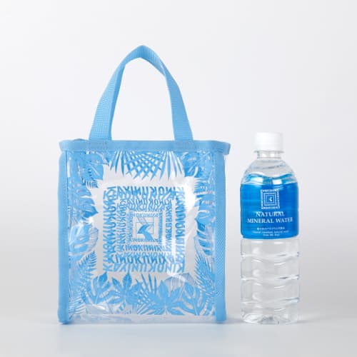 透明感のあるクリア素材にモンステラ柄が映える「ミニクリアトート」。コンパクトなサイズ感ながら、500mlのペットボトルや財布、スマートフォン、ポーチなど、必要な持ち物をきちんと収納できる実用性が魅力です。ライトブルー、ピンク、ライトグリーンの3色展開。