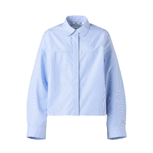 コットン100%素材のシャツは、短めの丈とボリューミーな袖が特徴。