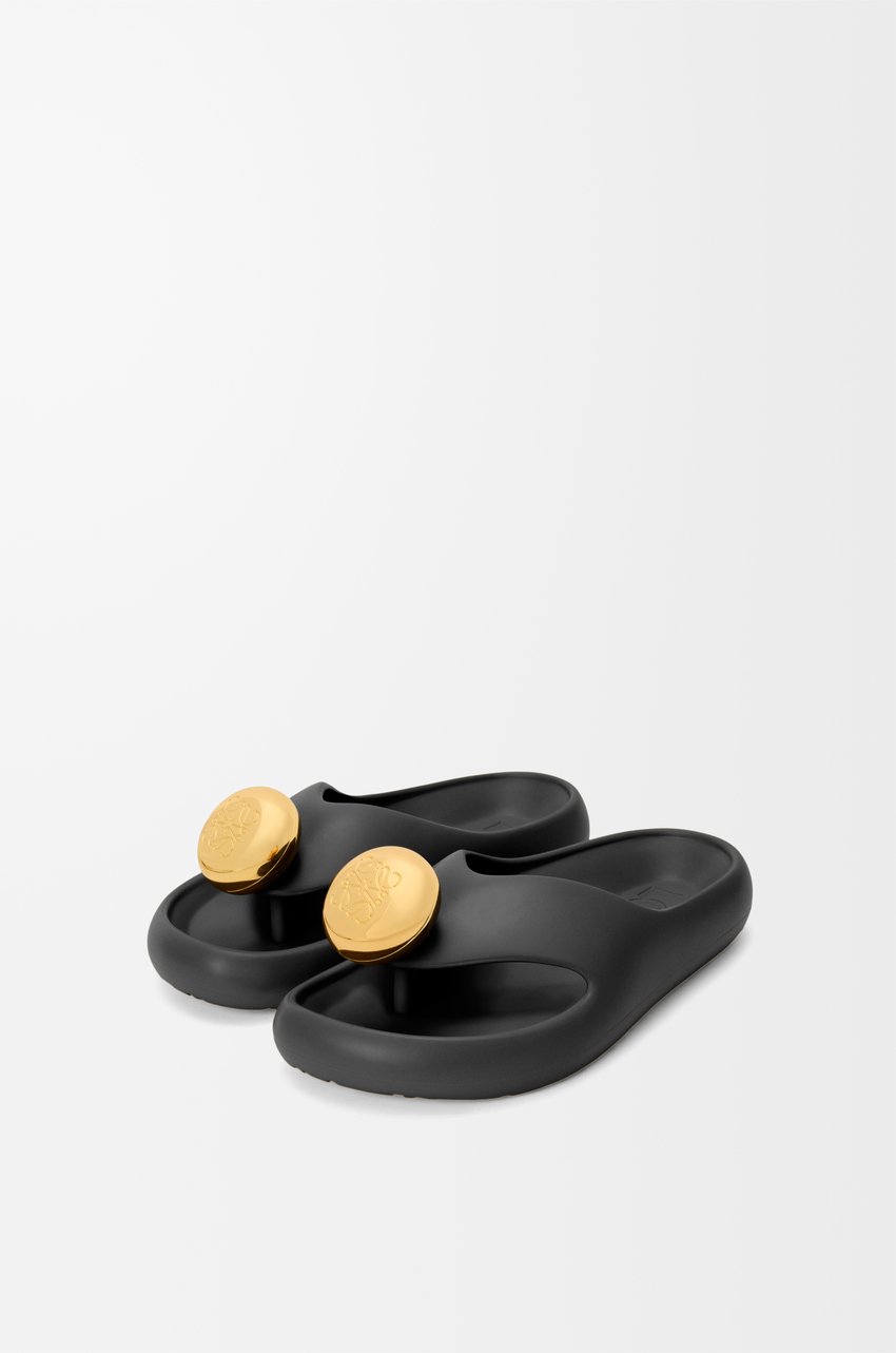 フォームラバー製のスライドに、メタリック仕上げのアナグラムペブルを配したデザイン。人間工学に基づいたインソールと、アナグラム入りアウトソールが特徴。