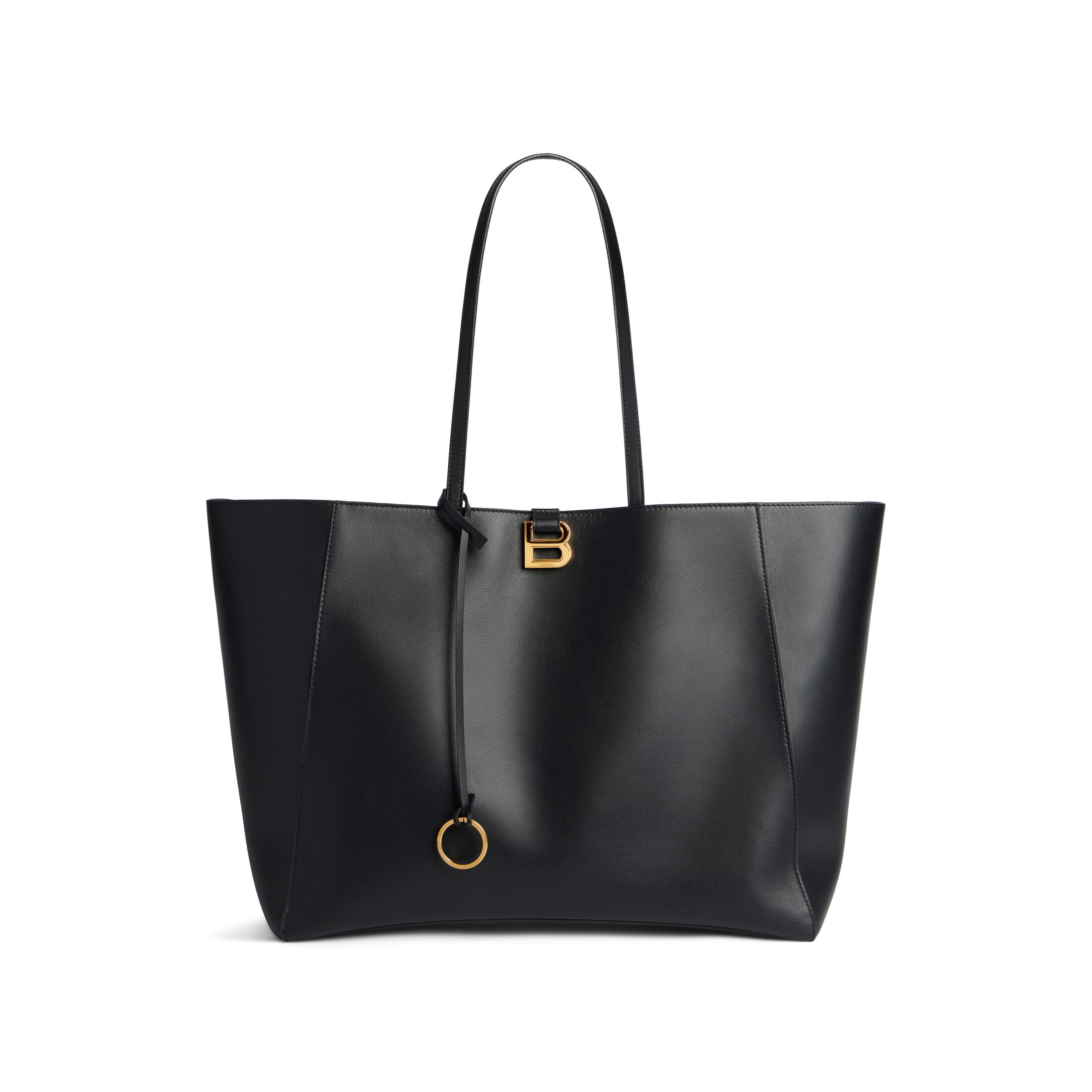 シグネチャーのベルト付きストラップとゴールドのロックがアクセントになった、端正で洗練された印象のトート。A4やノートパソコンも入る広々としたサイズ感で、サイドをスナップで広げれば収納力をさらにアップできます。ハンドや肩掛け、クロスボディと持ち方を変えられ、通勤や日常使いにもぴったり。