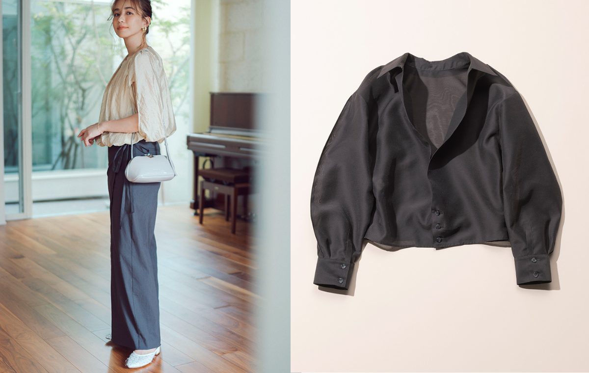 ジレ、ジャケット、2WAYブラウスなど。汎用性の高い「光沢トップス」で多様なアレンジを楽しんで
