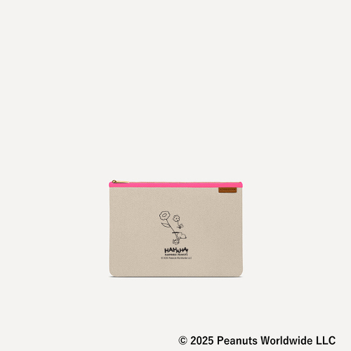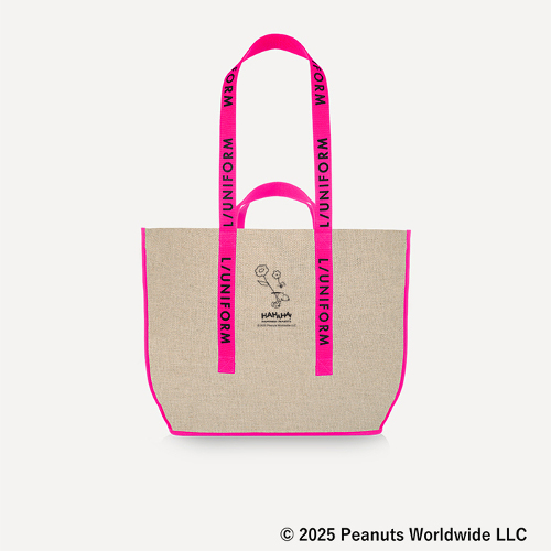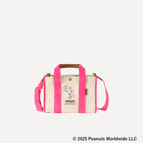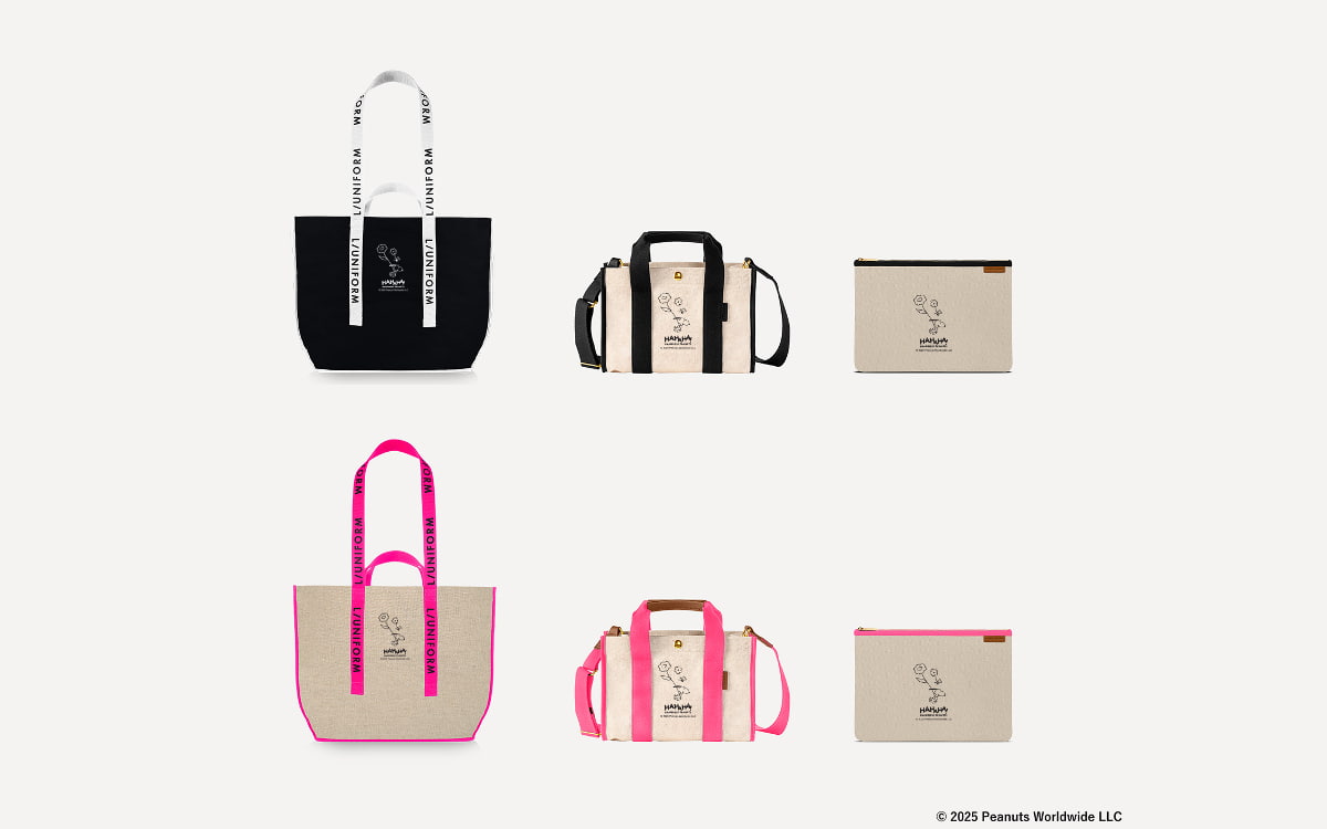 アイテムはバッグ2種とポーチの計3種をラインナップ。クラシックなコミックシーンから着想を得た、スヌーピーとウッドストックの姿が描かれています。すべてブラックとピンクの2色展開です。