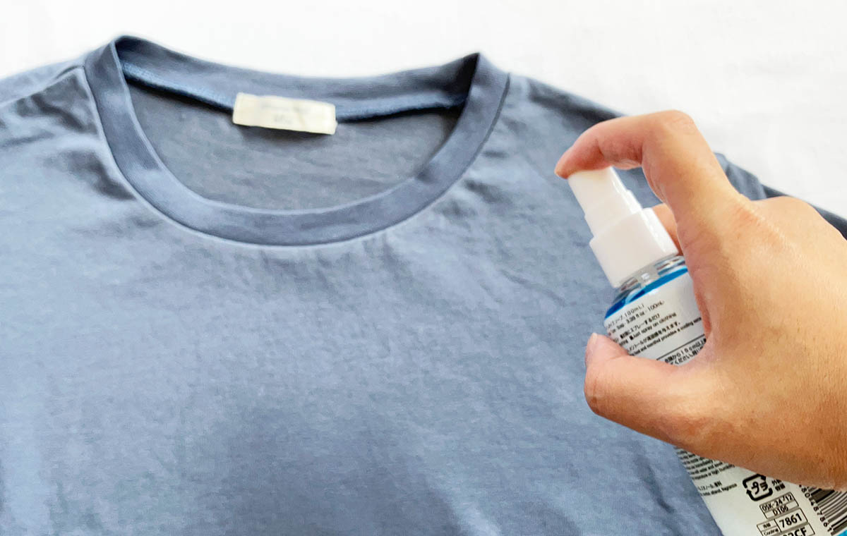 Tシャツに吹きかけてみたところ、確かに涼しい! 気温が高く、汗をかきそうなときに着る前にシュッとしておくと良いかも。外でも涼しく感じられる予感。