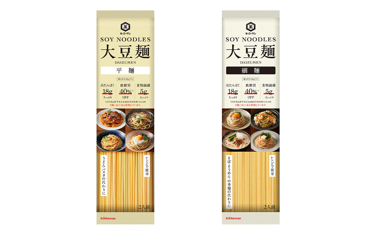 2022年に、麺とスープやソースをセットにした1袋1人前入りで発売。2025年2月には、麺のみの「大豆麺 細麺」「大豆麺 平麺」が2人前サイズでリニューアルされました。麺の配合や製法を見直し、さらにおいしくなっているんです。