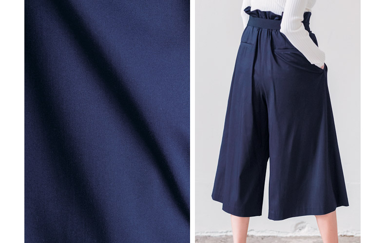 一見ラップスカートだけど、後ろから見るとガウチョパンツ。女らしい見た目にもかかわらず、脚さばきよく動けるから、活動的な日にぴったり! ウエストに配したグログランベルトもスポーティで、着るだけでコーディネートに今っぽさが加わります。季節を問わないモダールレーヨンのストレッチ素材は長く活躍。秋はパンプスで、寒くなったらロングブーツを合わせても新鮮に映ります。