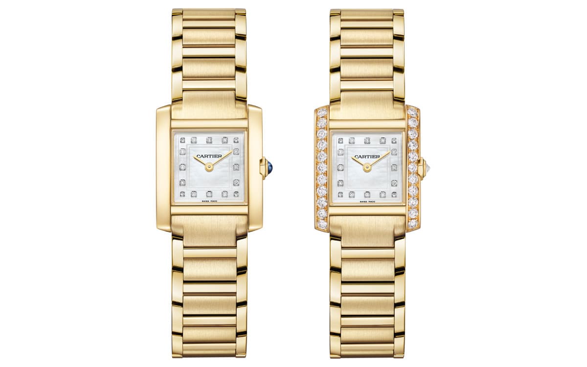 ダイヤモンド インデックスとダイヤルにあしらわれたスクエアラインがスクエアフォルムを強調し、手元に上品でフェミニンな印象をもたらします。イエローゴールドケースと、イエローゴールドケースの左右にブリリアントカット ダイヤモンドをあしらった2種での展開です。