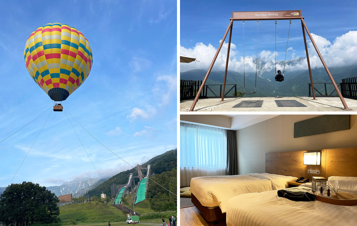 後ろ髪を引かれる思いでチェックアウトを済ませ、ホテルを後に向かったのは「白馬岩岳マウンテンリゾート」。雄大な自然の中で様々なアクティビティが楽しめる、白馬の人気山岳スポットです。ここでは山頂にある絶景大型ブランコ「ヤッホー!スウィング」を体験!