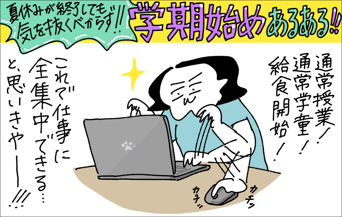 夏休みを終えた、今週の私の実録ネタとなります…。夏休み、終わればいいというものじゃなかったです。新学期のトラップに注意が必要です。