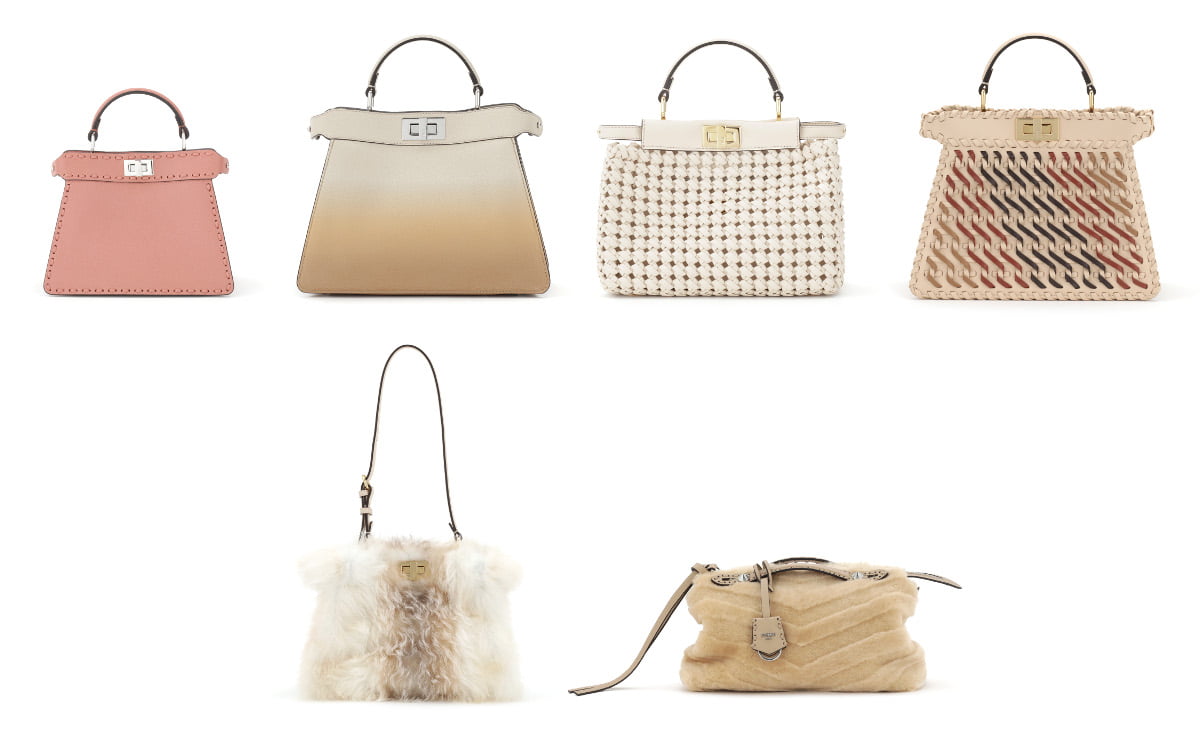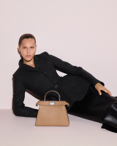 メゾンのシグネチャーをレトロフューチャーなセンスで再解釈したシアリングの新作バッグは、「ピーカブー」「マンマ バゲット」「バイ ザ ウェイ」でお目見え。絹のように滑らかなシアリングを纏った「ピーカブー ミニ」と「マンマ バゲット」は、良質な毛並みが発する優雅な輝きが魅力。クラシックなデザインはそのままに、ロングストラップによりさらに機能的になった「ピーカブー ソフト」は、質感の密度の濃いシアリング使用し、中央のシェードは手作業でペイントされています。
