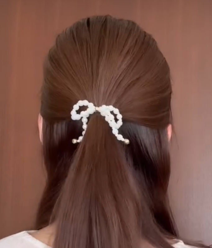「パールつきのヘアカフはエレガントな印象も添えてくれるので、ハレの日や学校行事のときのアレンジにもぴったりです」(浅野さん)