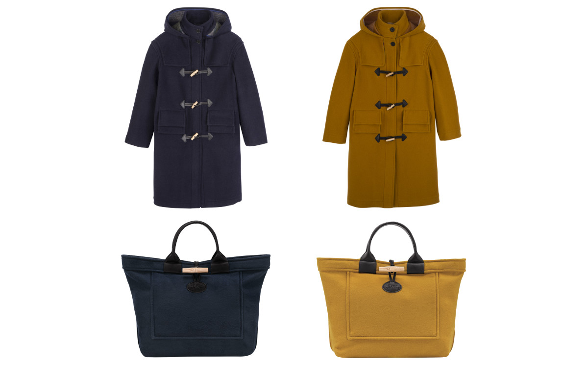 ロンシャンのアイコンバッグ「ル ロゾ」の特徴である“バンブー”を象ったトグルの着想源がダッフルコートのボタンであったことから、ダッフルコート愛好家からの誉れが高いグローバーオールとタッグを組んだ今回のコレクション。両メゾンが受け継ぎ育んできた定番を再解釈したダッフルコートとトートバッグを、ネイビーとナツメグの2色で展開します。
