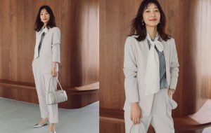 【お手本コーデ】グレージュのジャケパンで、品の良さと明るいムードを出して
