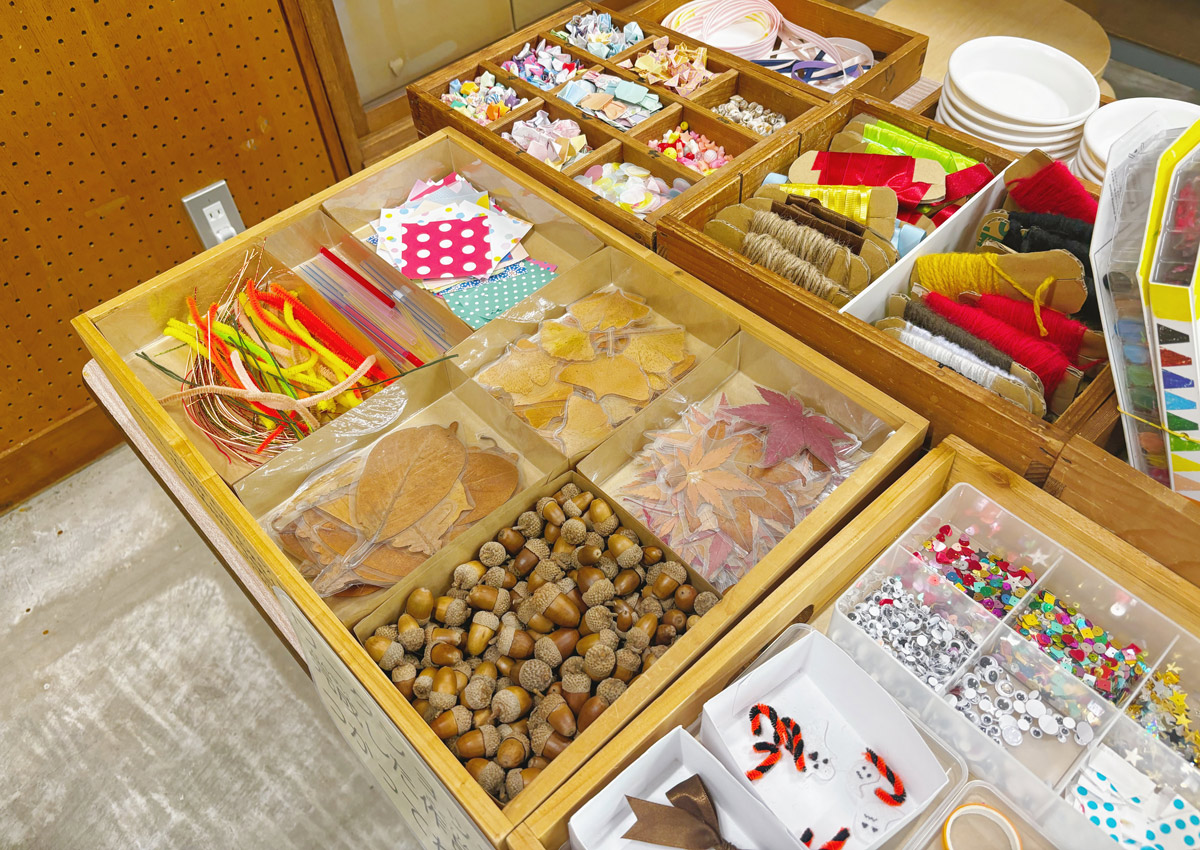 かつて音楽室だった教室を改装したアトリエでは、子ども向けワークショップを開催。豊富な素材の中から子ども自身が自由に選び、考え、手を動かして作品を完成させられるよう、随所に工夫が施されていて感動しました。季節や展示に合わせてワークショップの内容が変わるため、何度訪れても新鮮な気持ちで楽しめそうです。