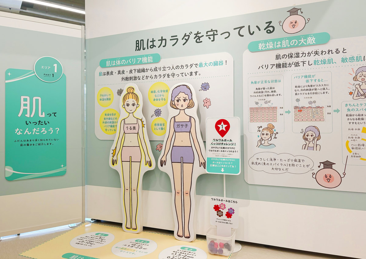 『なるほど!肌とからだチャレンジ展』は、テーマごとに5つのエリアに分かれて展開。その中からいくつかのエリアをピックアップしてご紹介します。