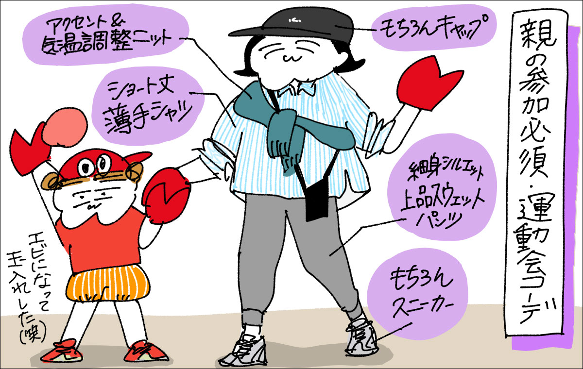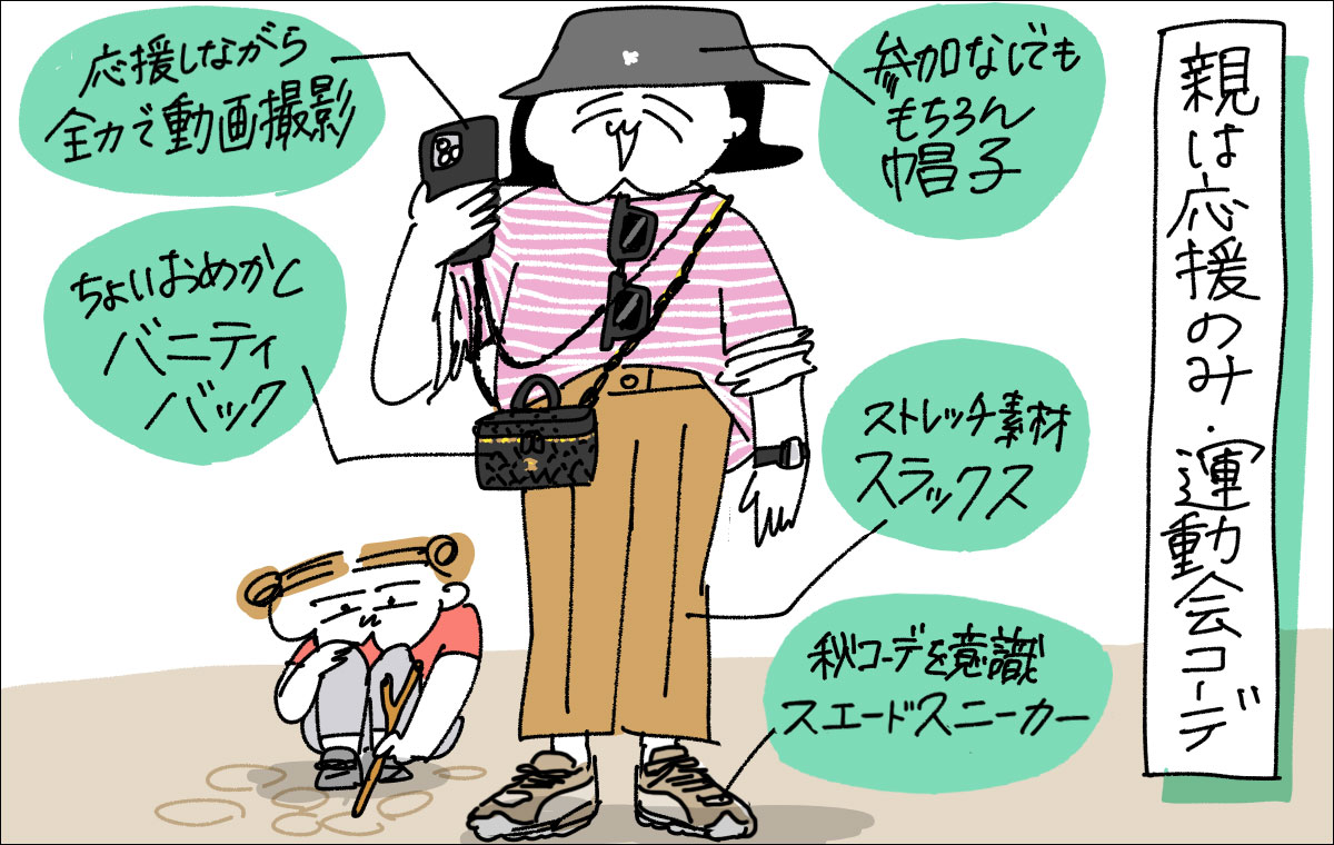 運動会シーズン!スポーツの秋!ということで、週末に秋の運動会の予定が入っているというママも多いのではないでしょうか。運動会に行くときに何を着ていく?と頭を悩ませた結果、競技参加あり、観覧のみ、それぞれのコーディネートが決まりました、というお話です。