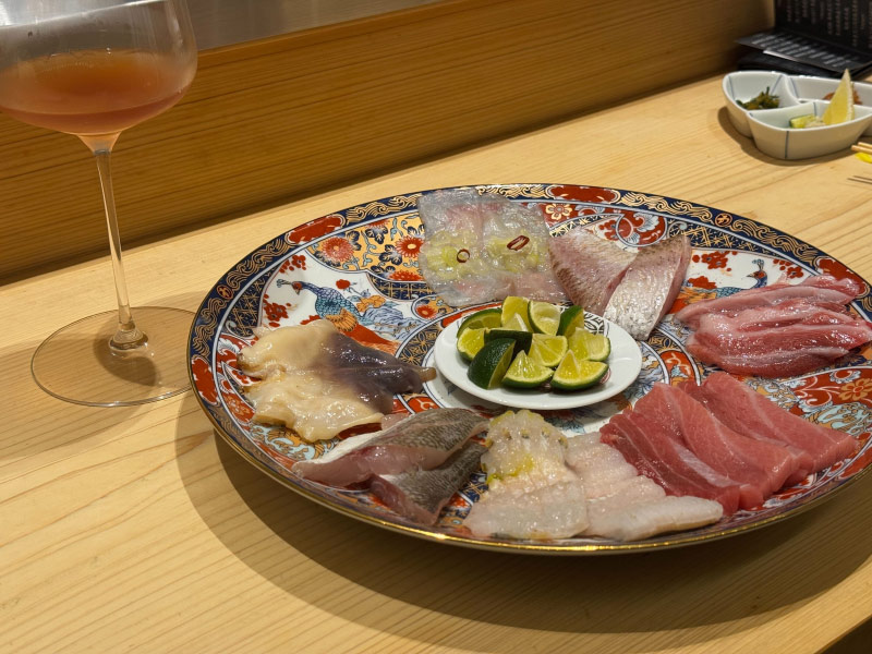 コースに合わせたおすすめは、イタリアのペットナット(微発泡ワイン)です。ナチュールワイン好きの店主曰く「魚に寄り添うワイン」なのだとか。ロゼワインやオレンジワインも多く取りそろえ、自然派ワイン×日本食の新しいマリアージュが楽しめます。
