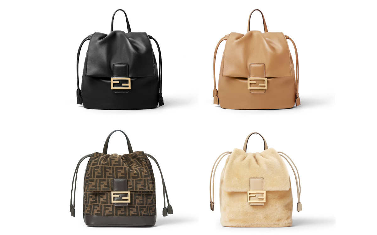 マグネットボタン開閉のフラップを開け、サイドに施されたドローストリングを調節することで、バック本体を好きなシェイプに変化させることが可能。ライニングにはアイコニックな「FF」ロゴジャカードを採用し、随所までラグジュアリーな雰囲気を漂わせています。