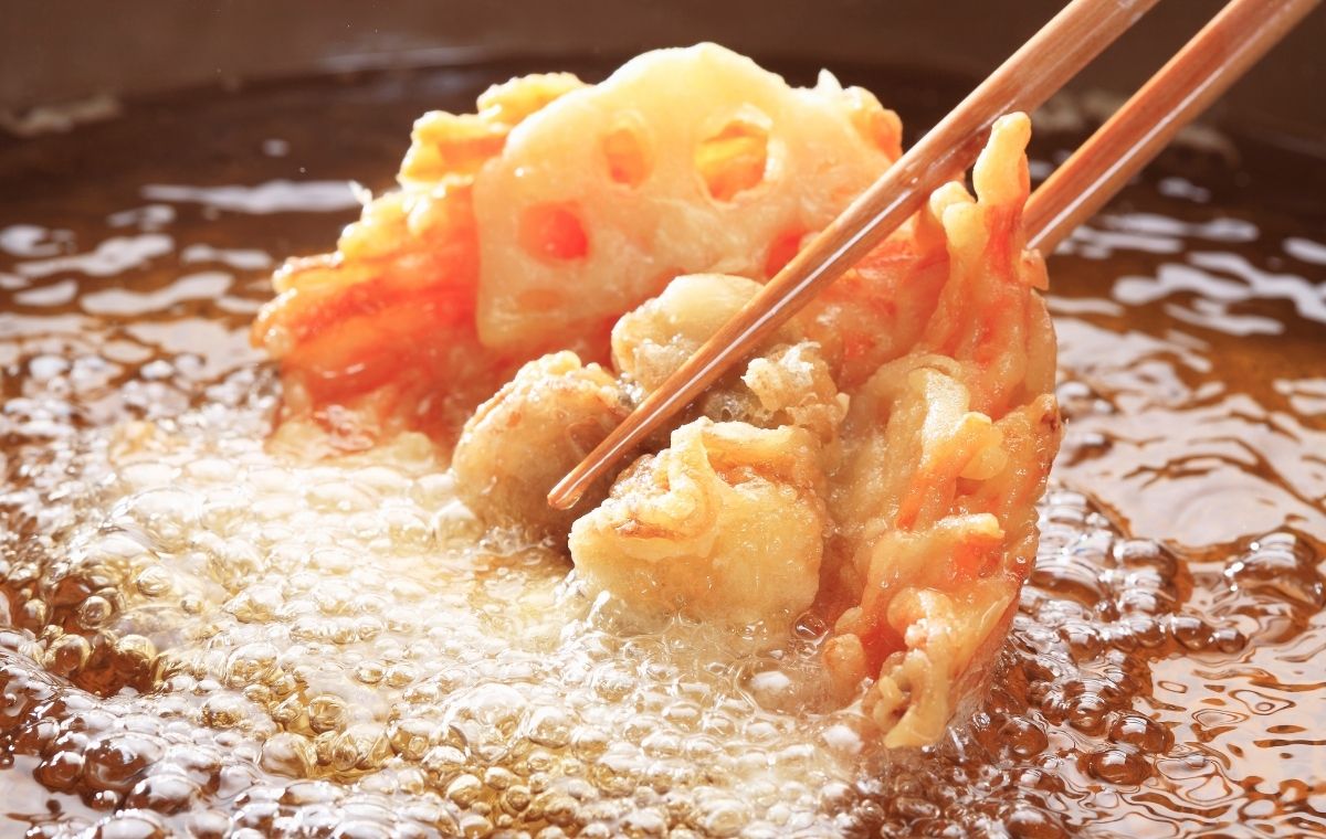 グルテンは温度が高いほど発生しやすくなります。抑えるには、天ぷらに使う材料を冷蔵庫でよく冷やしておくのがポイントです。