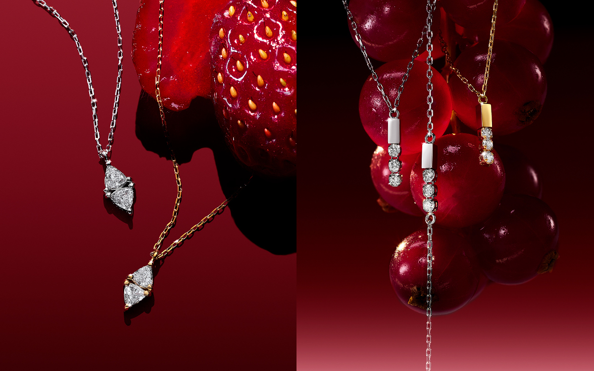 ▲(左から)セブロン ロサンジュ ダイヤモンド ネックレス¥138,600(Pt / ダイヤモンド)