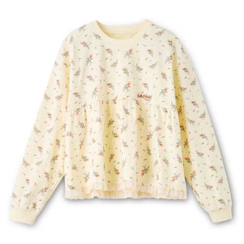 キャス キッドソンのアーカイブからsowaさんがセレクトしたアートをロングスリーブTシャツにプリント。ゆったりとした程よくカジュアルなサイズ感で、胸元のギャザーと裾のコットンレースがフェミニンな印象をプラスしています。