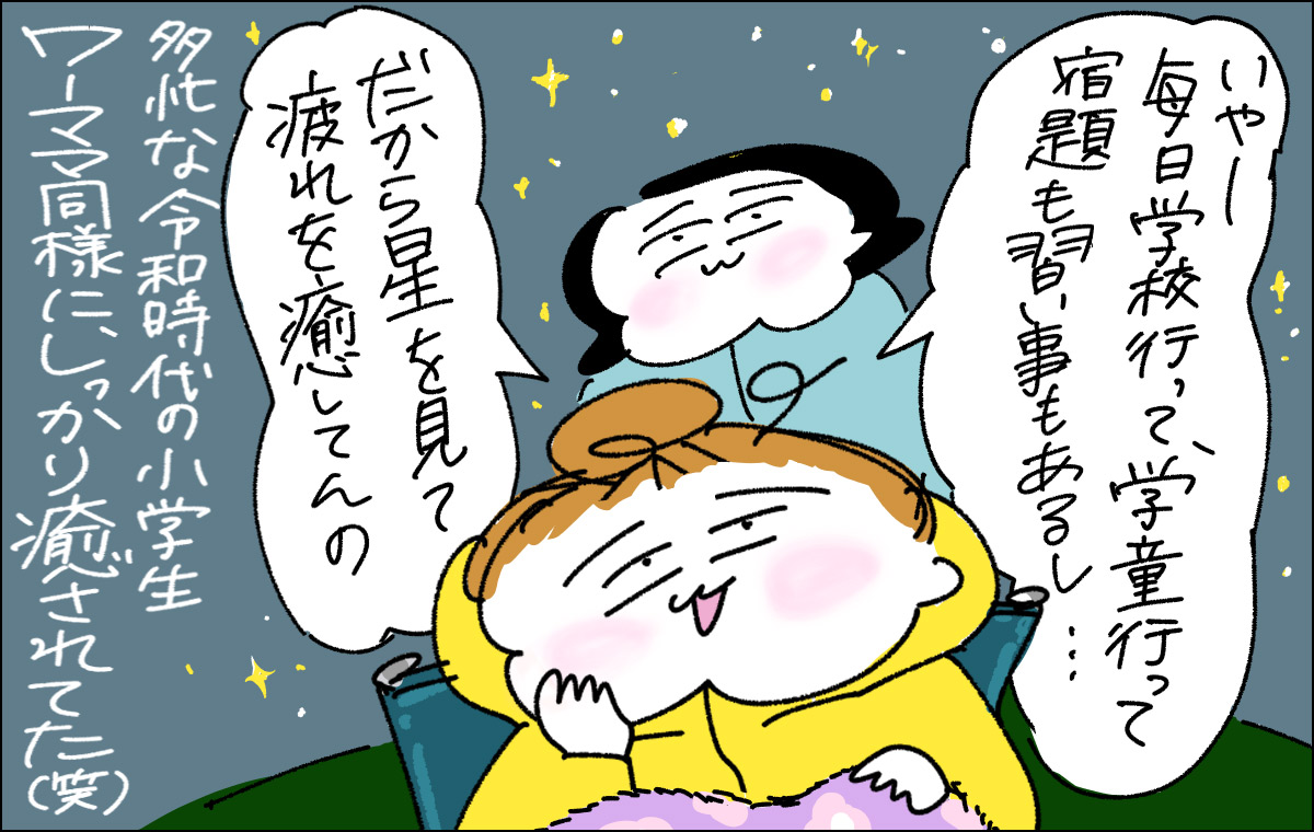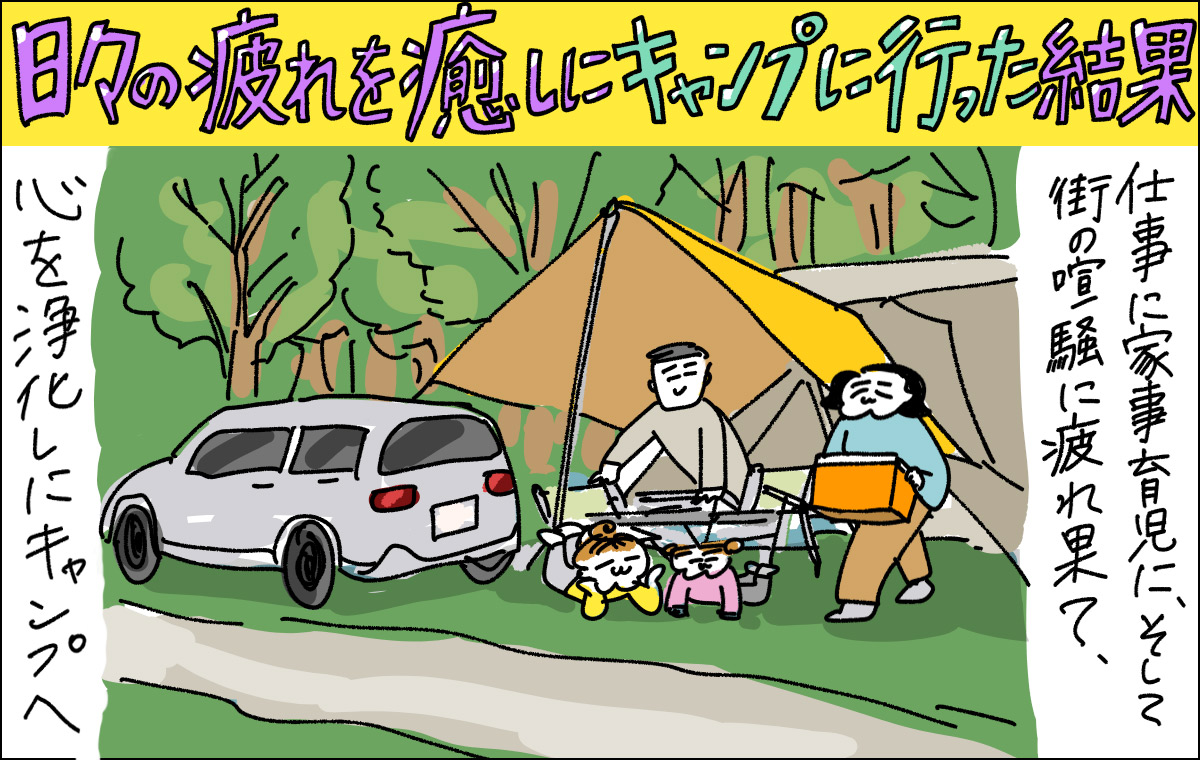 育児、家事、仕事とやること満載な日々の中で癒しを求めて家族でキャンプへ。疲れているのはママだけじゃなかった、というお話です。