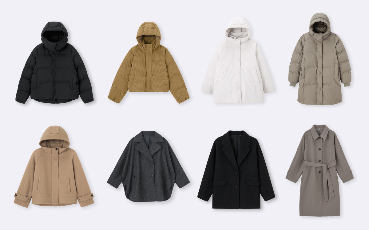 あたたかい空気を包み込む中空中わたを使用した中わたアウター「ウォームパデット」。アップデートを重ねながらユーザーからの支持を集め続けている、GUの定番アウターです。