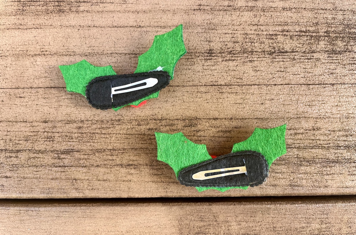 前髪をとめたりサイドの髪を止めるのに使いたい、ヒイラギデザインのヘアピン。サイズは約横8.3cm×縦3.9cm×奥行き1.7cmと大きめなので、ひとつつけるだけでも華やかです。