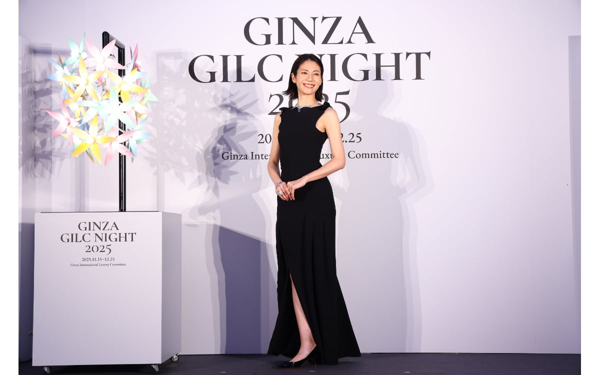 3年ぶりに実施された点灯式には、俳優の松下奈緒さんが登壇。松下さんはジョルジオ アルマーニの黒のドレスに、ギルクのメンバーでもあるカルティエのハイジュエリーを身に着けて登場。総額約3億6000万円というジュエリーについて、「自然美、水面を感じさせるようなデザインで見惚れてしまう」とコメントしました。