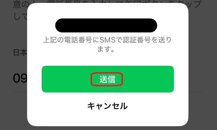 SMSで認証番号を送るため「送信」をタップします。認証番号が届いたら、入力してログインしましょう。