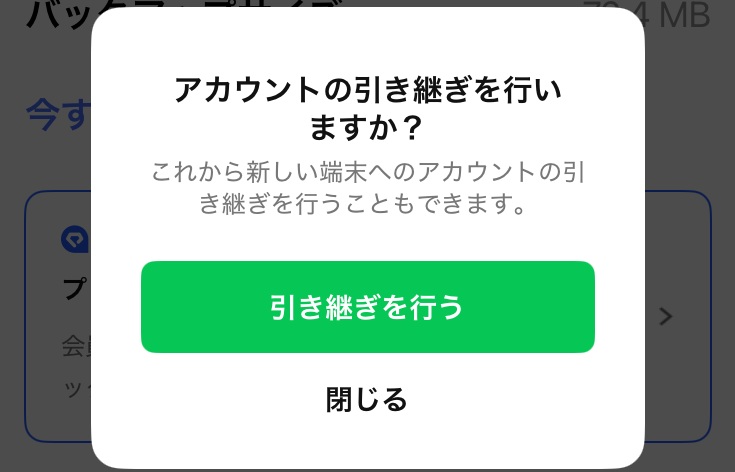「引き継ぎを行う」か「閉じる」をタップして完了です。