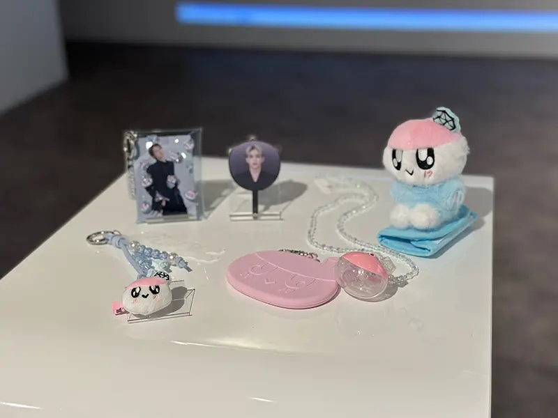 今回のポップアップストアのポイントとなるフォトスポットが。SEVENTEENのOFFICIAL LIGHT STICKに着眼した キャラクターのボンボンイの今回のツアー商品である「LOCAL BONGBONGEE PLUSH KEYRING」が巨大になって壁面に登場。